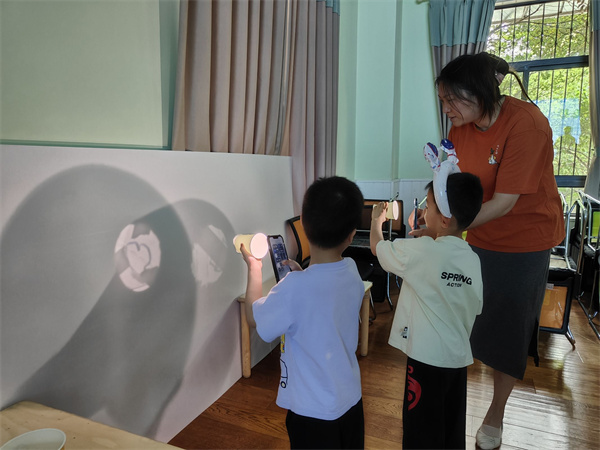 11ÒôÀÖÌüµÄ¡°¹âÓëÓ°¡±ÓÎÏ·£¬Ç××ÓÓÃÖ½±×ÔÖÆÍæ¾ß£¬º¢×Ó¾Ù×Å»ÓÐÐÇÐǵÄÖ½±ÕÕÏòǽ£º¡°ÂèÂ裬СÐܱä´óÀ²£¡¡±¡°ËüÓÖ±äСÁË¡£¡±