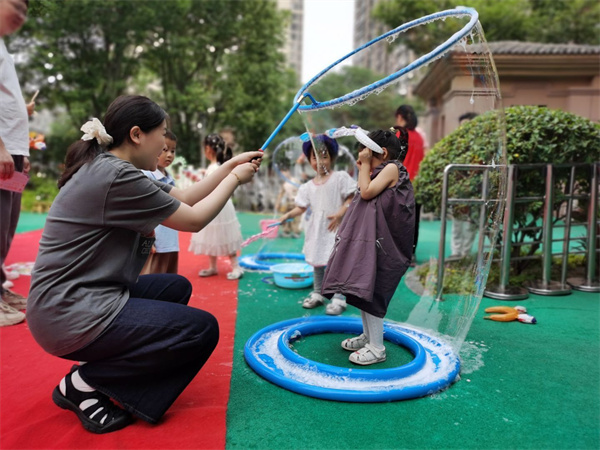 1¡°ÅÝÅÝÅɶԡ±ÖУ¬¼Ò³¤ÌáÆðÌØÖÆÅÝÅÝÆ÷£¬¾§Ó¨ÅÝÅÝĤÂýÂý°ü¹üס³ØÖÐÓ×¶ù£¬Í¸¹ý±¡±¡µÄÅÝÅÝĤ£¬º¢×ÓÃÇ´¿ÕæµÄЦÁ³ÓëÎå²Ê°ß쵵ĹâÓ°»¥ÏàÓ³ÍУ¬¹¹³ÉÁËÒ»·ùÎÂܰÓÖÆæ»ÃµÄ»Ãæ¡£
