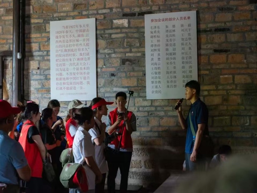 循着革命先辈的脚印,理论团怀着崇敬之情来到井冈山革命烈士陵园,肃立默哀,缅怀先烈。他们走进茨坪革命旧址群、大井毛泽东旧居,探望革命先辈在艰苦环境中的工作场景;登上黄洋界,倾听保卫战故事;重走朱毛红军挑粮大道,体验红军战士运送粮食的艰苦;在小井红军医院旧址,倾听红军女战士曾志的感人故事......红色脚印铸就了理论团成员的青春担当。