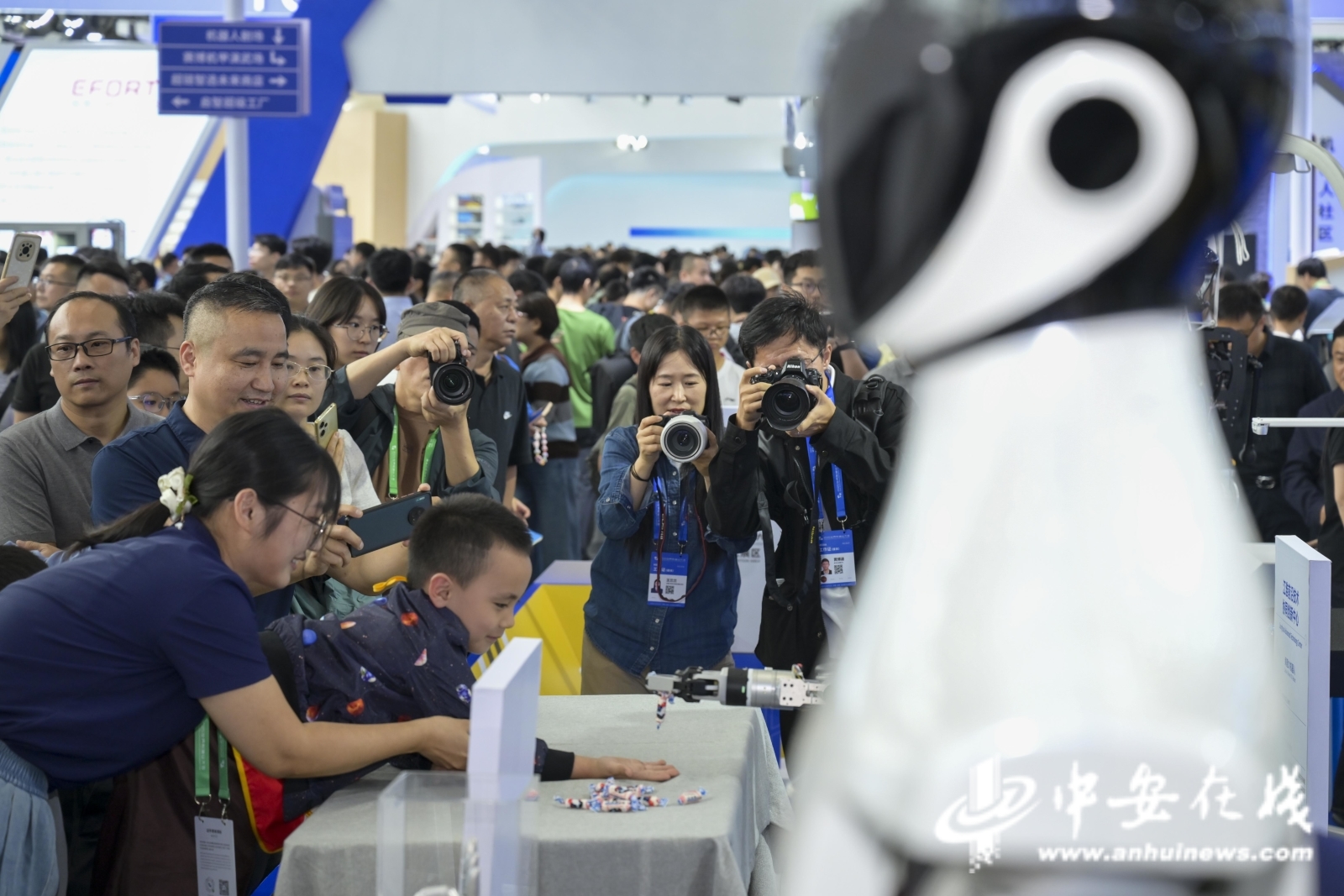 Õ¹»áÉÏ£¬¶à¿îÈËÐλúÆ÷ÈËÏÖ³¡ÑÝʾ²Ù×÷£¬Óë¹ÛÖÚ»¥¶¯£¬Õ¹ÏÖÁËÖйúÔÚÖÇÄÜÖÆÔìÁìÓòµÄ×îнøÕ¹¡££¨¼ÇÕß ÁõÓñ²Å ·ûÐãÔÆ£©