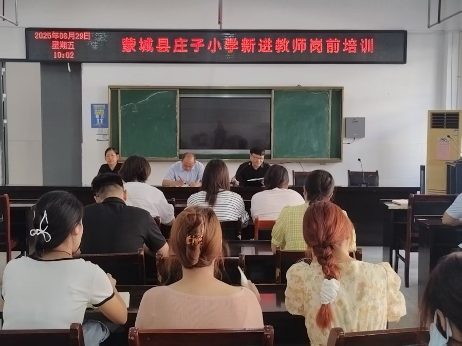 8月29日上午,蒙城县庄子小学举行了新进教师岗前培训,协助新进教师快速融入校园环境、明确职业方向。培训由副校长张琳掌管。