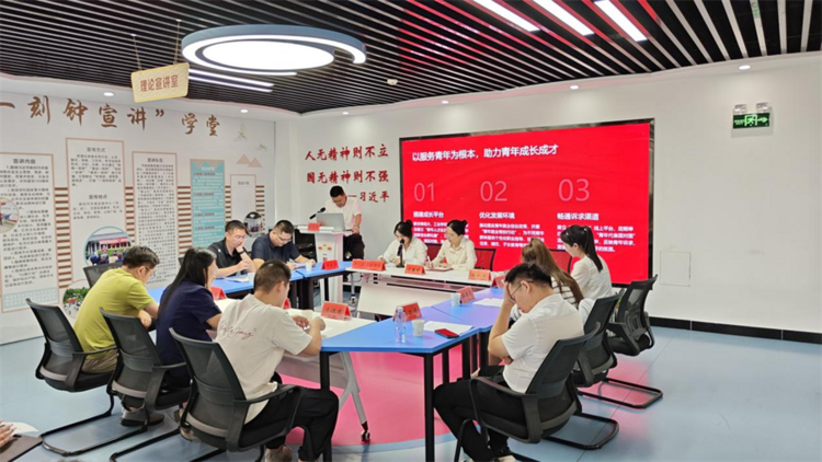 随后,全体人员来到天长市新时代文明理论中心青年夜校基地举办座谈会。会上,团天长市委副书记、天长市青联主席卫潘婷领学习近平总书记重要贺信和党地方致词精神,全体人员深入领会习近平总书记对青年群体的殷切希冀与嘱托。