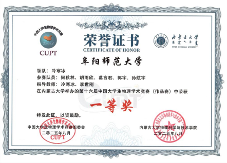 阜阳师范K8凯发学子在第16届中国K8凯发生物理学术竞赛作品赛中获一等奖
